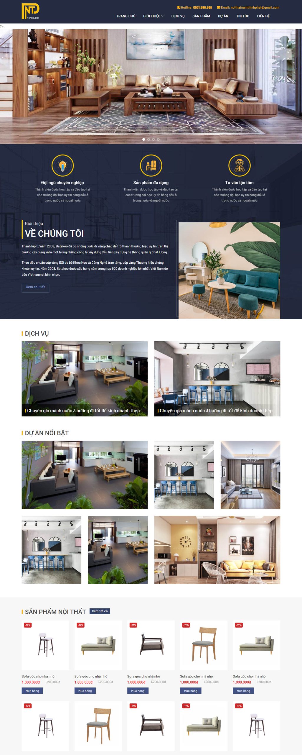 Giao diện được thiết kế với tone màu hiện đại bắt mắt. Website demo RT số 7 đem đến một website chuyên nghiệp, tinh tế với những dịch vụ nổi bật.